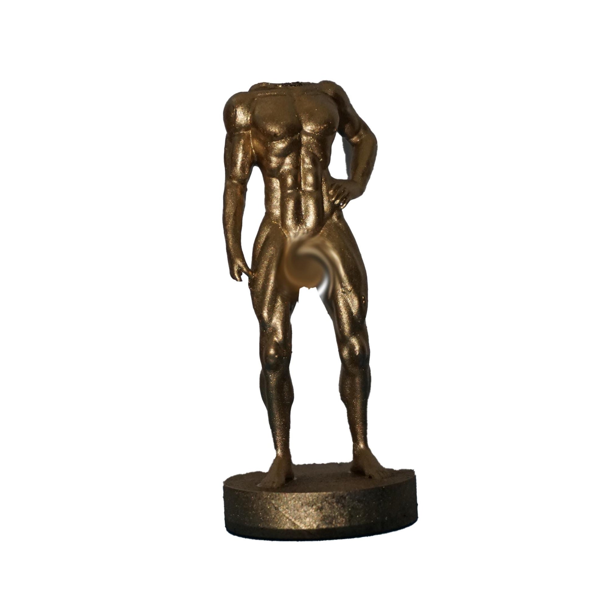 This powerful muscular male figurine stands tall, sculpted with precision to highlight strength, symmetry, and grace. Finished entirely in a smooth metallic gold tone, it radiates timeless beauty and commanding presence. Whether displayed as a modern art piece, a celebration of the masculine form, or a symbol of inner strength, this statue serves as a striking focal point in any space. The bold silhouette and minimalist finish make it perfect for contemporary decor, fitness enthusiasts, or lovers of classical human anatomy.